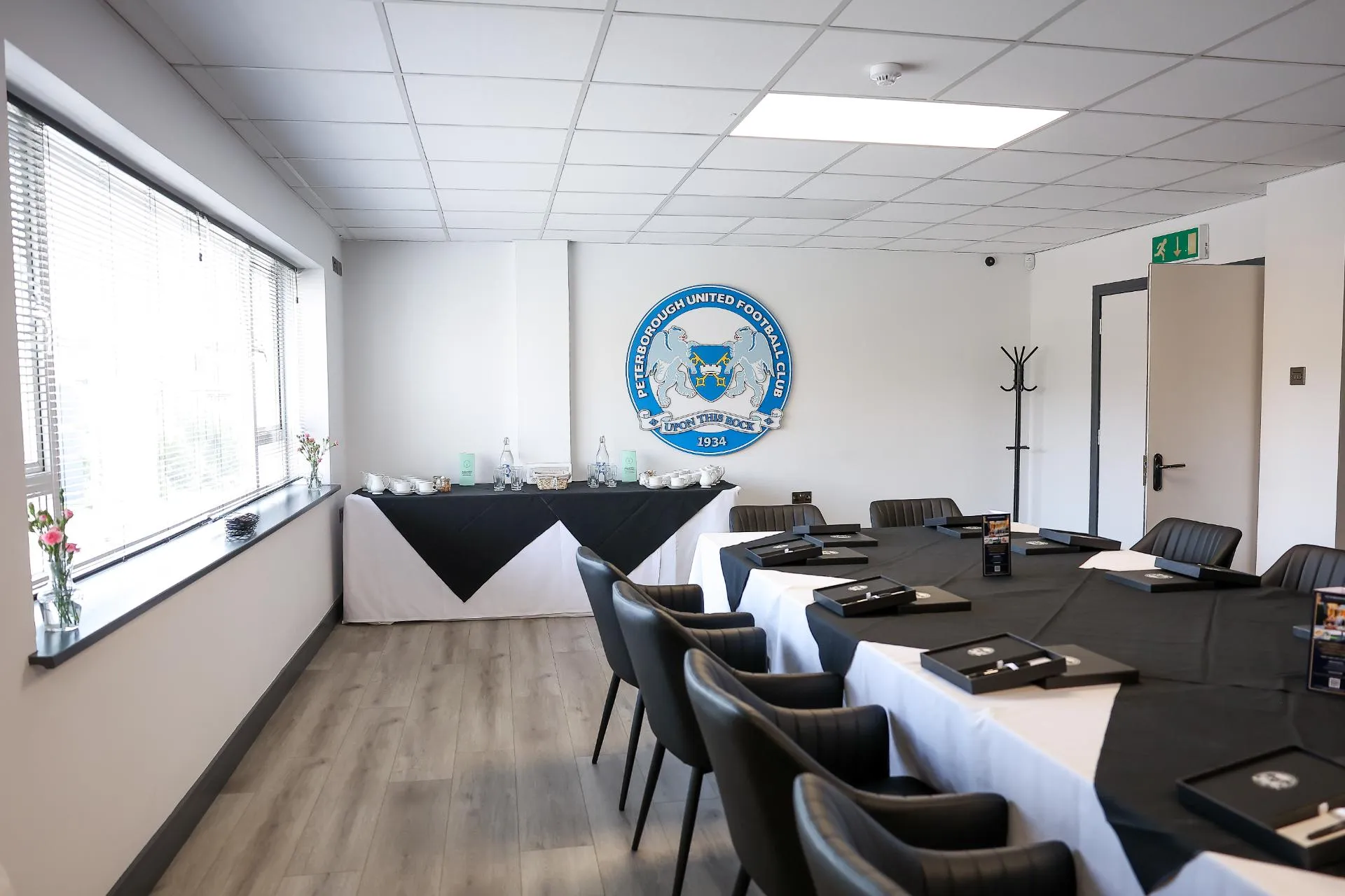 Mark the occasion with a meeting in the prestigious Boardroom at Peterborough United Football Club. With capacity for up to 20 guests, this private and professional space offers a refined setting for executive meetings, strategic planning sessions or intimate dining experiences.